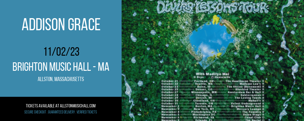 Pop concerts are are attended by so many thousands of fans, they are obsessed with the euphoria you get from live music and actually seeing their best loved acts in action, theres something special about it. Pop lovers almost exploded when tour dates were announced for the all new fall, 2023 Addison Grace US tour, it's going to be wild and the dopest event of the year for sure! Addison Grace will be live at the astounding Brighton Music Hall Massachusetts, Allston on Thursday 2nd November 2023. Brighton Music Hall is just the leading, so many fans say it's their favourite venue, they love the situation, the refreshments, simple parking and also the outstanding service, the ratings serve Brighton Music Hall well! If you're looking for a Thursday night of pure pop music this November this is where its at! Look for the 'get tickets' icon, click it immediately to grab yours, you know you want to!
